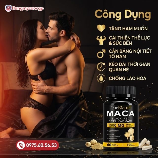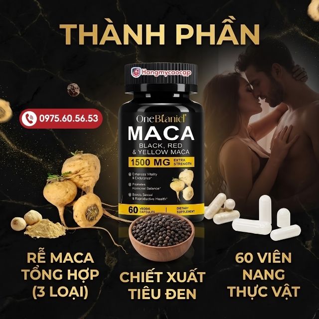 Bạn đang tìm sản phẩm Maca chất lượng, rõ nguồn gốc? Tại Hangmycaocap.com, Maca Black Red Yellow 1500mg được cam kết chính hãng, kiểm định kỹ lưỡng trước khi đến tay khách hàng. Giá hiện tại 790.000₫ cho 1 lọ 60 viên nang, hỗ trợ giao hàng nhanh toàn quốc. Đặt mua ngay để cải thiện sức khỏe sinh lý của bạn.