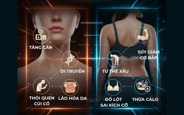 - Lão Hóa và Da Chảy Xệ: Theo thời gian, da mất đi Collagen và Elastin, khiến da vùng cổ và cằm bị chùng xuống, làm cho nọng cằm trông rõ ràng hơn, kể cả ở những người có cân nặng lý tưởng.